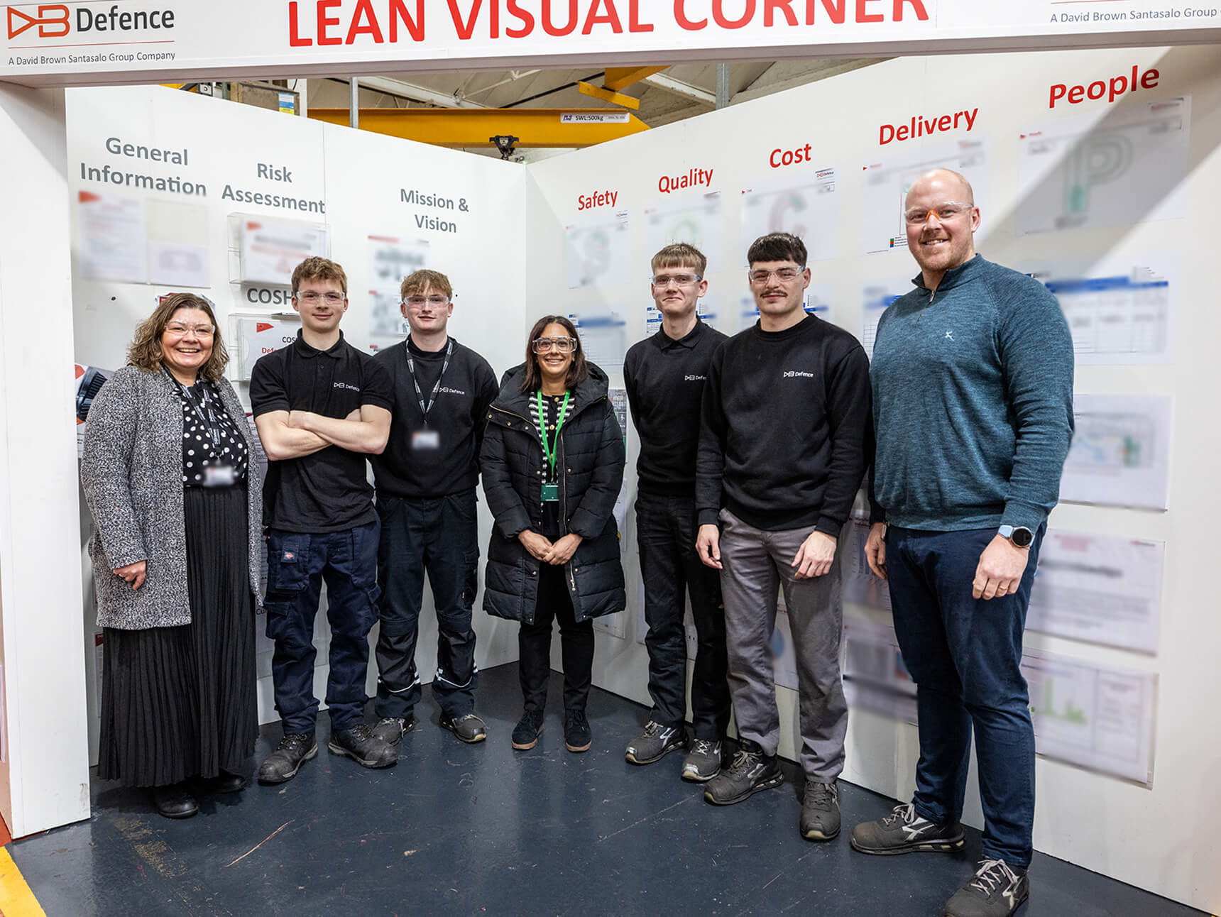 L-R: Kate Norman, Chief Organisation & Development Officer (DBS Group), David Scott, IPT Director - Land (DB Defence), Harpreet Uppal, MP Huddersfield, Mike Helme, Managing Director (DB Defence), Jo Spalding, Head of Business Performance & HSE (DB Defence), Jennie Nicholls, Head of Marketing (DBS Group) and Michelle Rodgers, UK Proposals and Purchasing Manager (DB Defence).